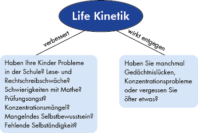Mit Life Kinetik werden dem Körper nicht alltägliche visuelle und koordinative Aufgaben gestellt. Es werden also Körperbewegungen ausgeführt, während gleichzeitig das Gehirn gefordert wird. Dies bedeutet, dass stets mehrere Bereiche im Gehirn gleichzeitig aktiv sind und somit das Gehirn durch diese Herausforderungen neue Verbindungen (Synapsen) herstellt. Je mehr Vernetzungen im Gehirn angelegt sind, desto höher ist die Leistungsfähigkeit des Gehirns. Kinder werden kreativer, Schüler konzentrierter, Sportler leistungsfähiger, Berufstätige stressresistenter und Senioren aufnahmefähiger und geschickter im Umgang mit Gefahrensituationen.